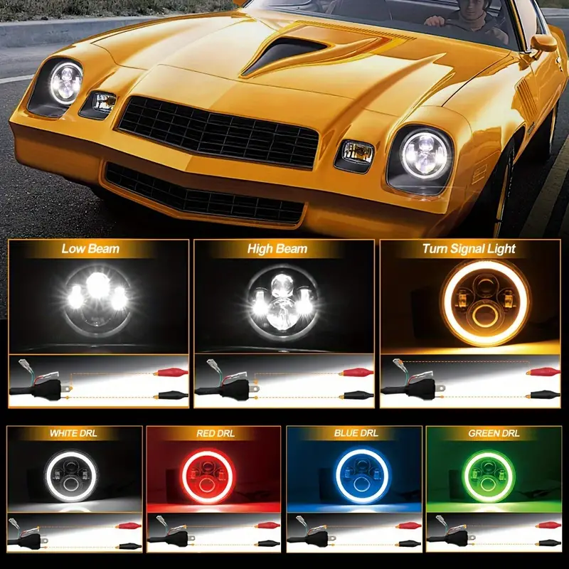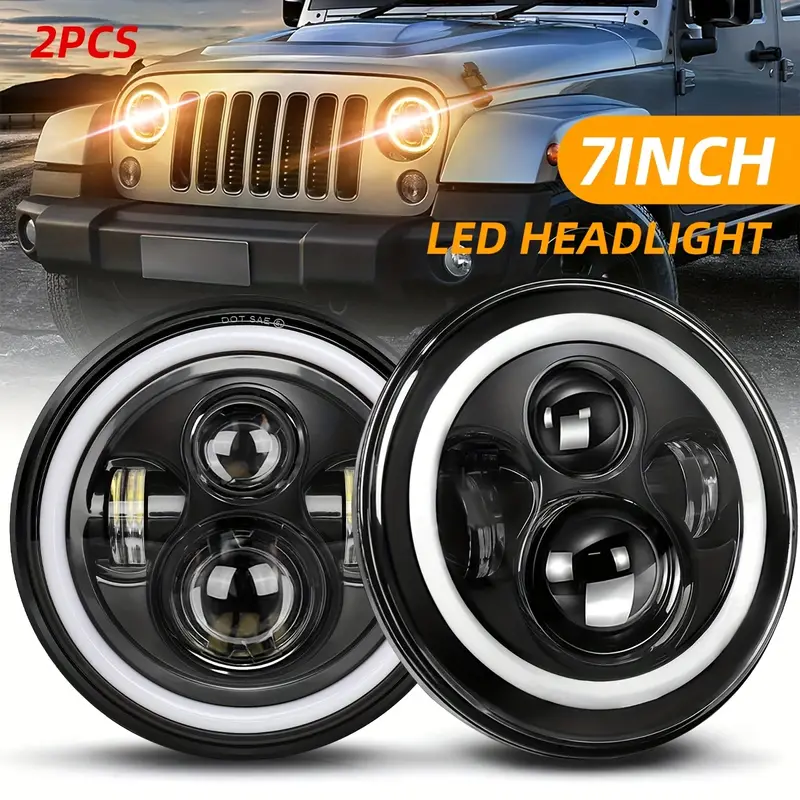 2pcs 17.78 Cm Round Led Headlight With Clourful Drl & Amber Turn Signal, Hi/low Beam Dot Approved For Jeep For Wrangler Jk Tj Cj Jeep Wrangler
